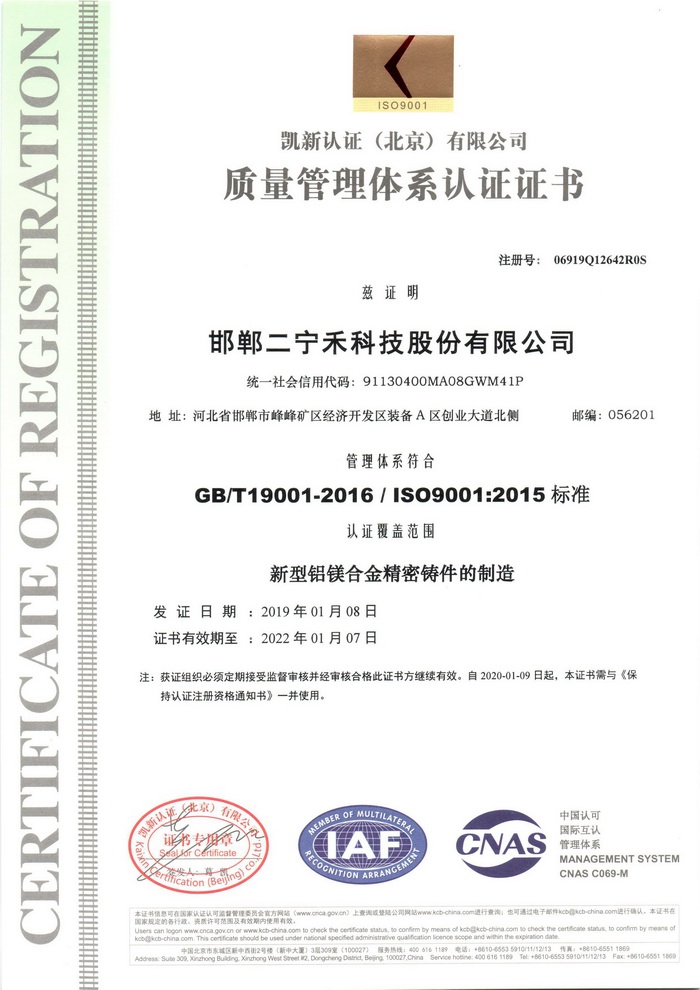 質(zhì)量管理體系認證證書